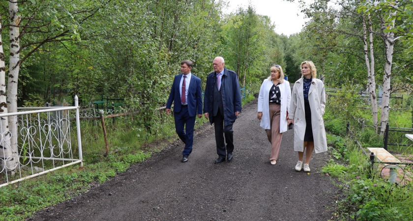 Александр Попов посетил разные учреждения и объекты в Инте. В первую очередь он побывал на городском кладбище. Там установили мемориальную доску, где увековечены 125 имен участников Великой Отечественной войны. После делегация направилась в храм Святой Троицы. Сейчас на территории храма делают аллею в память о погибших во время специальной военной операции.