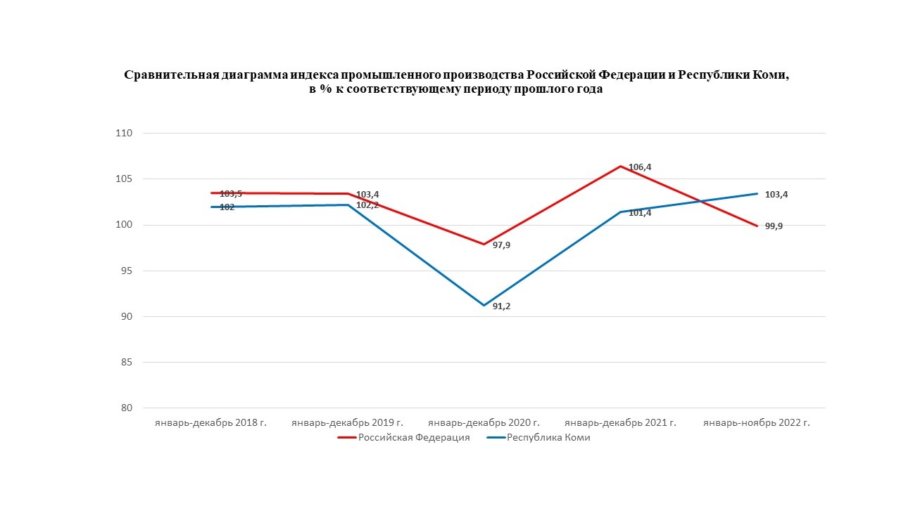 Среди субъектов Северо-Западного федерального округа Республика Коми занимает третье место по индексу промышленного производства за январь-ноябрь 2022 года.
