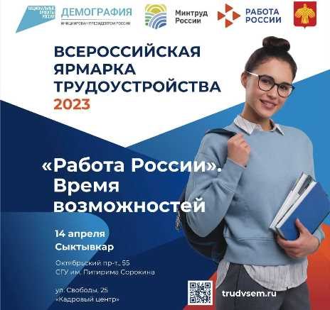 14 апреля в Сыктывкаре состоится первый этап Всероссийской ярмарки трудоустройства «Работа России. Время возможностей».