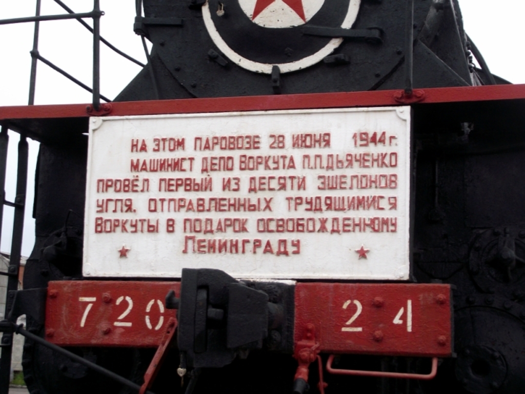 Первый эшелон с углем в освобожденный Ленинград 28 июня 1944 года привел из Воркуты машинист Петр Дьяченко. В августе 1980 года паровоз Эм 720-24, который он вел, был поставлен на вечную стоянку на железнодорожном вокзале Воркуты. На памятной доске текст: «На этом паровозе 28 июня 1944 года машинист депо Воркута П.П. Дьяченко провел первый из десяти эшелонов угля, отправленных трудящимися Воркуты в подарок освобожденному Ленинграду».
