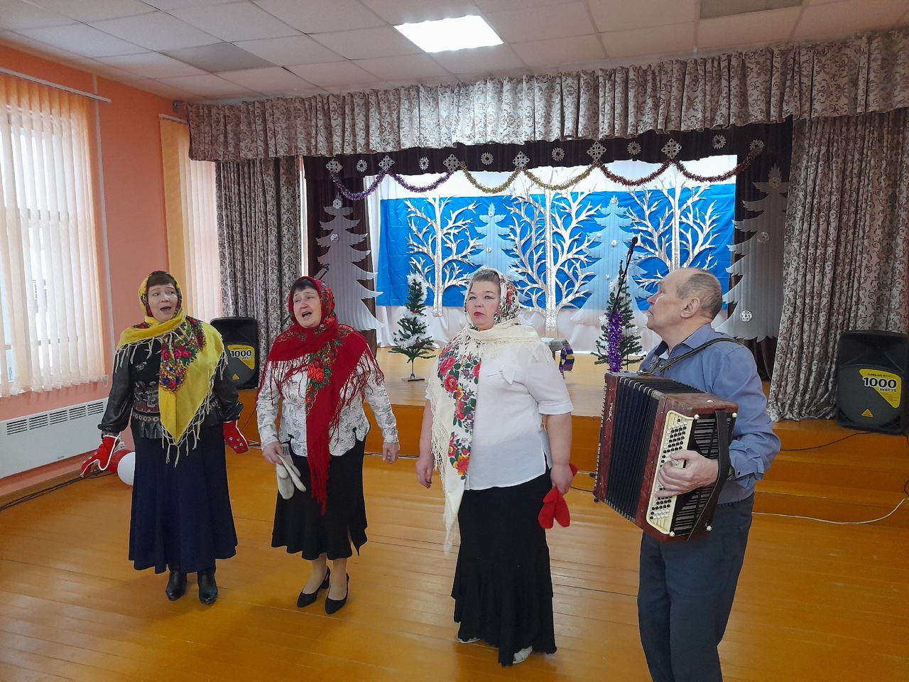 Во время нашего вечера мы вспомнили о весёлых зимних историях, которые с нами происходили. Наш бессменный баянист Юрий Терентьев сопровождал задушевными и задорными мелодиями каждую спетую нами песню.
