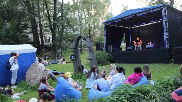 На мероприятии работал фудкорт, прошли разнообразные мастер-классы, игры и конкурсы. Зрители сидели не только на стульях и скамейках, но и просто на траве. Завершился концерт с появлением первых звезд на небе.