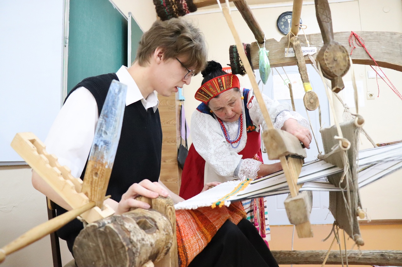 Сотрудница Музея села Ыб показала, как наши предки творили чудесные полотна на ткацких станках. Ребята по очереди попробовали себя в этом ремесле, узнали об устройстве инструмента и соткали несколько половичков.