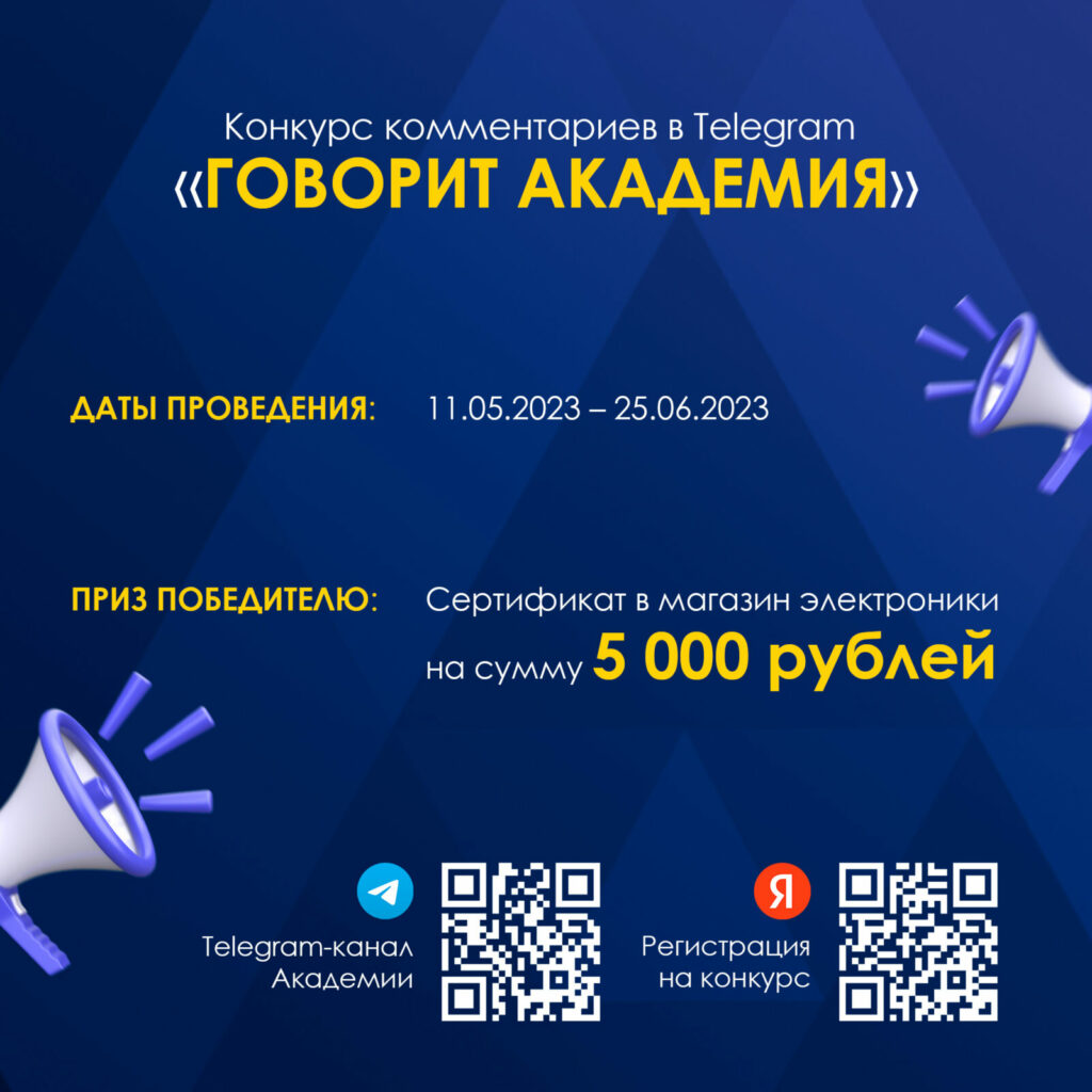 Тогда скорее регистрируйтесь на наш конкурс «Говорит Академия»! С 11 мая по 25 июня на платформе Telegram-канала Академии ( https://t.me/krags11 ) будет проводиться конкурс комментариев.