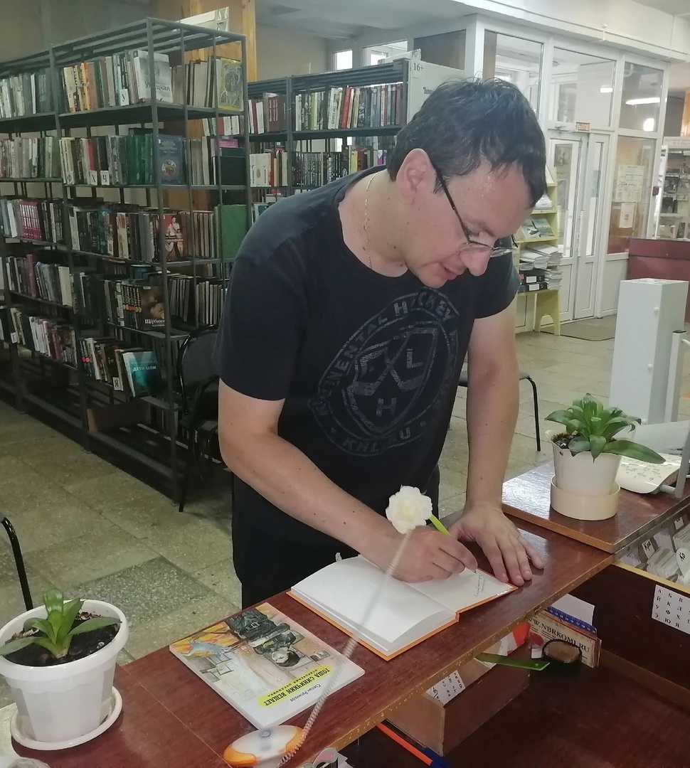 И, конечно же, главное для библиотеки - это подаренные две книги с дарственной надписью автора: повести «Близкие и чужие» и юмористическая проза «Гоша Синичкин вещает. Откровения охранника».