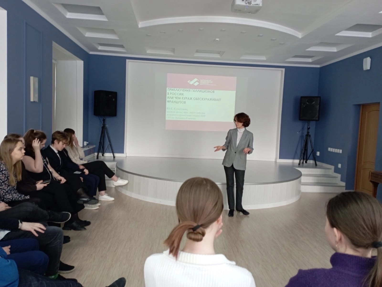 21 февраля 2023 доцент кафедры немецкого и французского языков Юлия Сухорукова провела урок-беседу с учащимися 10-х классов МАОУ «Лицей народной дипломатии» на тему «Приключения галлицизмов в России, или почему русский кураж обескураживает французов».