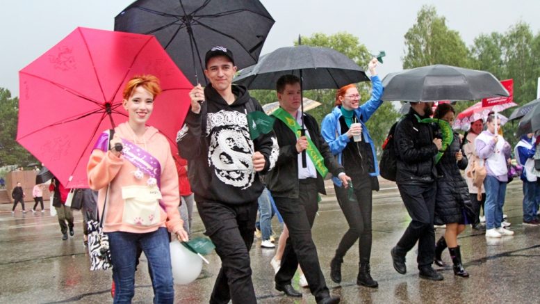 А вот молодежь воспринимала происходившее с юмором. В итоге к началу шествия ударил гром и начался настоящий ливень. Казалось, организаторы решат все же отменить дневную программу, как это было в 2019 году. Однако на сцене все уже было готово к вручению дипломов, поэтому под раскаты грома и сияющие молнии парни и девушки двинулись к сцене. Там выстроились лучшие выпускники вузов и ссузов Коми. Выступая перед молодежью, глава региона Владимир Уйба напомнил, что в этот же день отмечается День ветеранов боевых действий. Он сказал, что это значимый праздник: