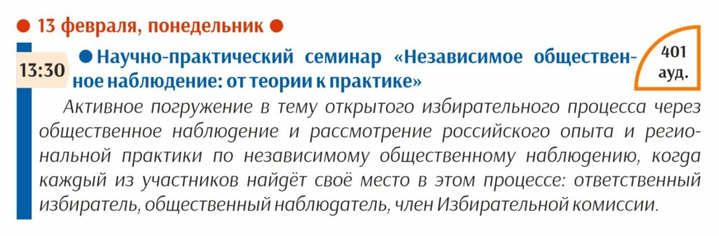И сегодня нас ждёт научно-практический семинар «Независимое общественное наблюдение: от теории к практике»,