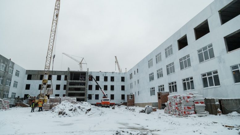 Часть работ на объекте уже выполнена на 100 процентов. Сейчас ведутся работы по монтажу стеновых панелей, плит перекрытия лестничных маршей, устройству монолитных участков, кирпичной кладке третьего этажа, прокладке внутренних инженерных систем, монтажу водомерного узла в подвале, вентиляционных коробов на втором и третьем этажах, установке вентиляционных камер в подвале, монтажу окон, прокладке напорной канализации.