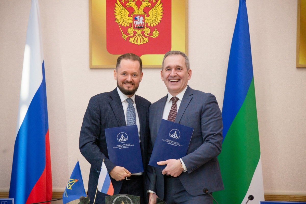 На открытии заседания ректор УГТУ, профессор Руслан Агиней и генеральный директор ООО «Газпром ВНИИГАЗ» Максим Недзвецкий подписали учебный план по образовательной программе специалитета «Прикладная геология», обеспечивающей одновременное получение двух квалификаций: горный инженер-геолог и горный инженер-геофизик. Интегрированный учебный план разработан кафедрой поисков и разведки месторождений полезных ископаемых нефтегазового факультета совместно с Филиалом ООО «Газпром ВНИИГАЗ» в г. Ухта.