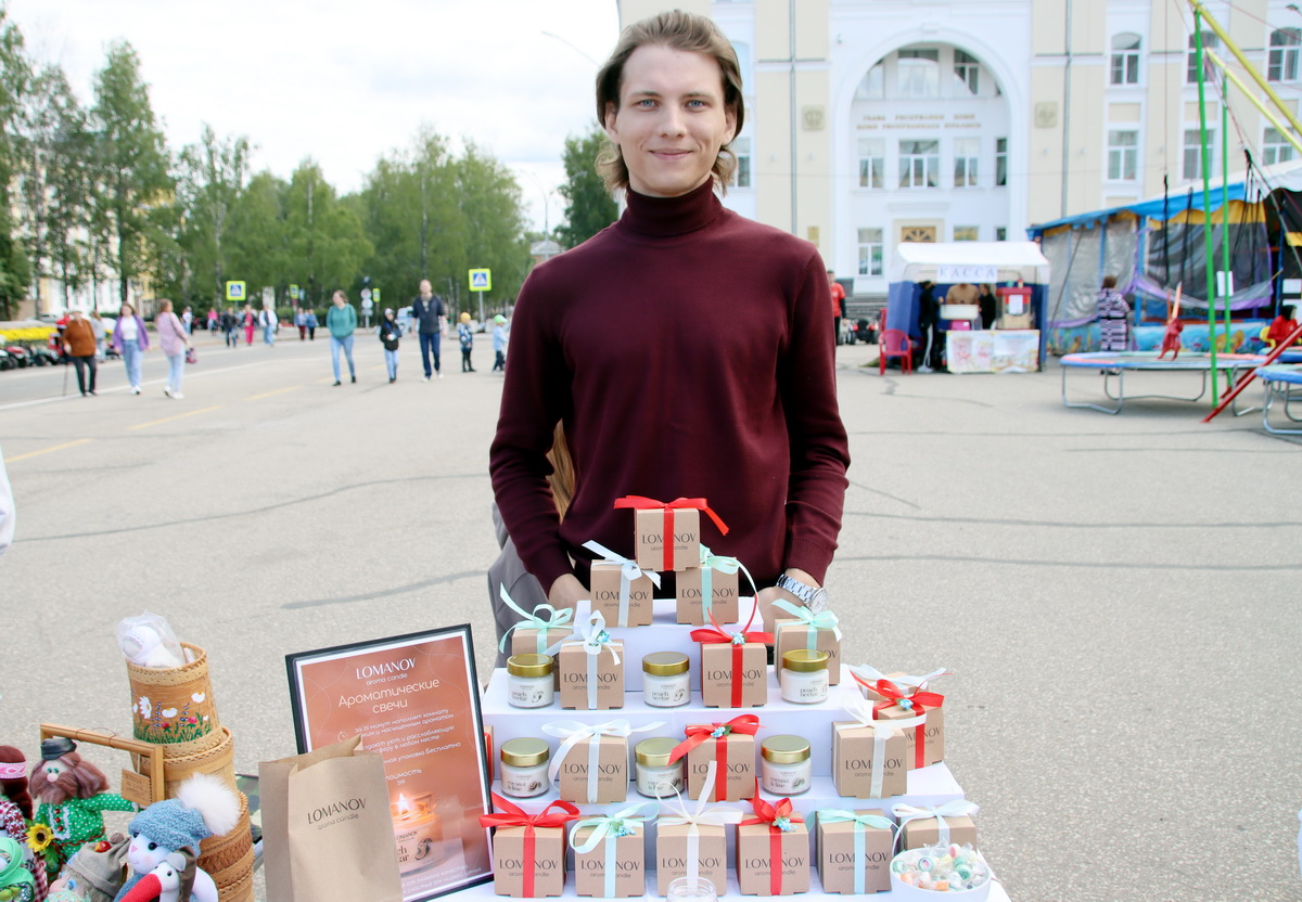 Выставка-продажа "День республики" собрала на своей площадке и дебютантов. Дмитрий Ломанов успел зарегистрироваться на участие в выставке в последний день и рассказал "Комиинформу", как пришел в бизнес по изготовлению ароматических свечей.