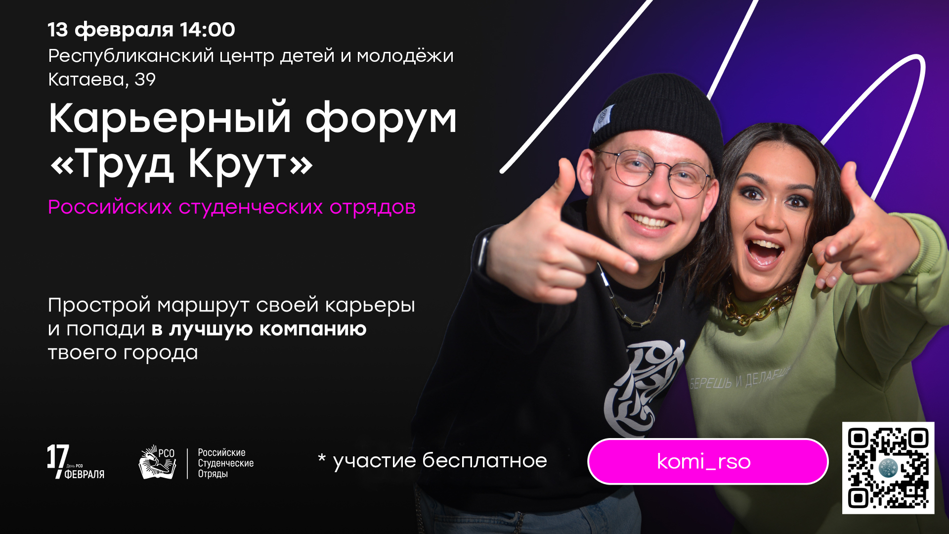 В рамках проведения акции "Неделя студенческих отрядов Республики Коми" 13 февраля состоится карьерный форум "ТРУД КРУТ", сообщает пресс-служба Минцифры Коми.