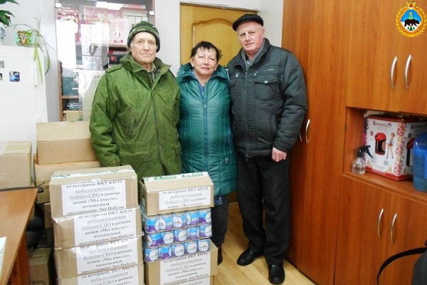 Для доставки бойцам была собрана большая посылка, состоящая из 11 коробок, вложения которых состояли из продуктов питания (каши, сгущенка, тушенка и т.д.).