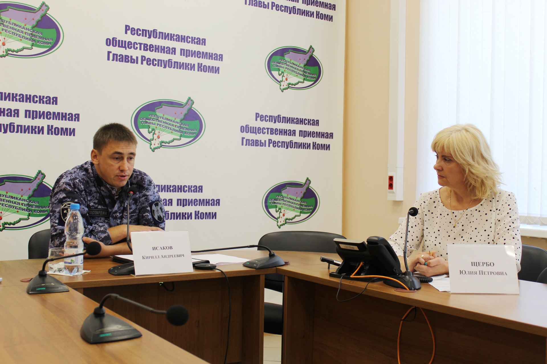 В Центре обеспечения деятельности администрации главы Республики Коми состоялась прямая линия по вопросам, касающимся соблюдения гражданами установленных правил оборота оружия. На вопросы граждан ответил старший инспектор отделения контроля за оборотом оружия Центра лицензионно-разрешительной работы Управления Росгвардии по Республике Коми майор полиции Кирилл Исаков.