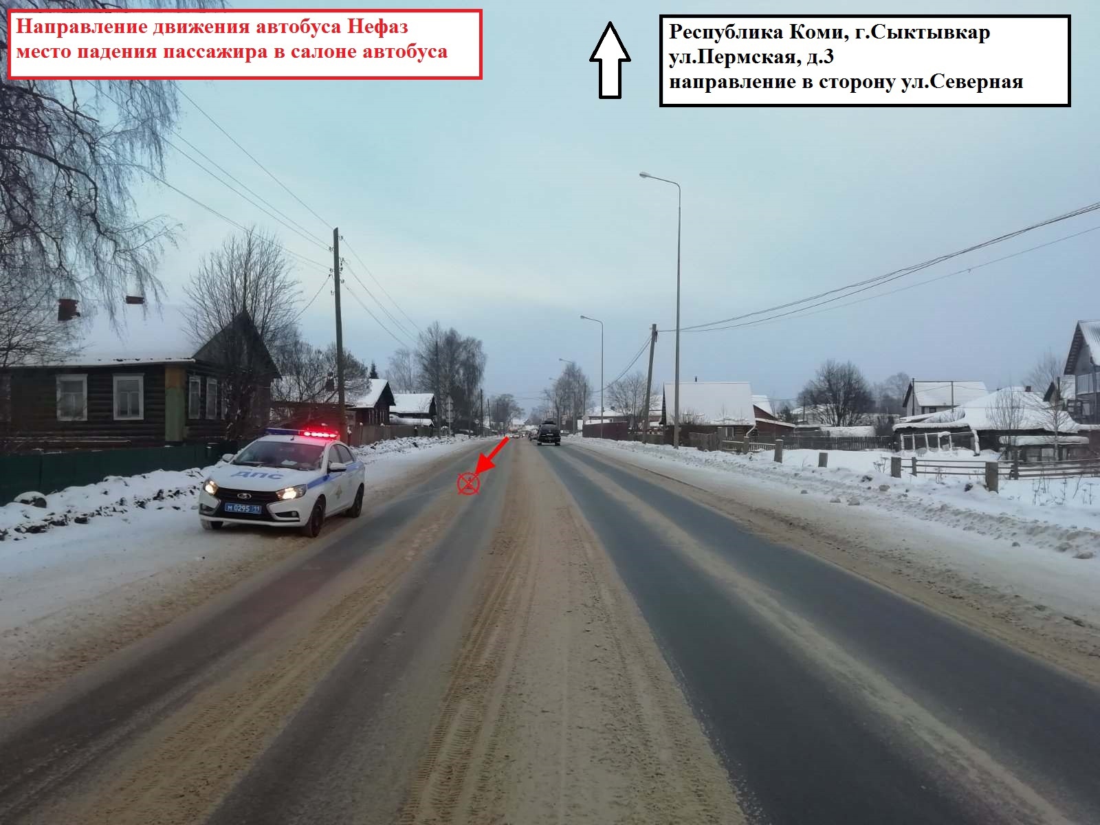 Первая авария произошла в Сыктывкаре вчера, 22 февраля, около 12.14. Водитель 1987 года рождения за рулем пассажирского автобуса НефАЗ ехал по ул.Пермская со стороны ул. Северной в направлении ул. Колхозной. Напротив дома №3 по ул. Пермской при движении он допустил падение пассажира в салоне автобуса.