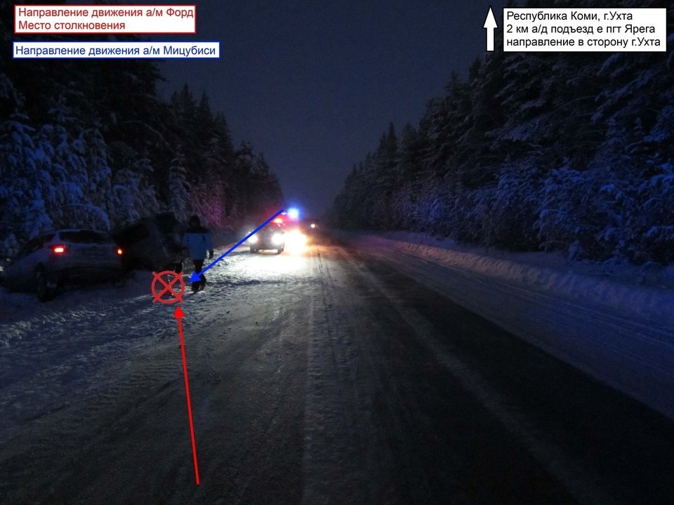 ДТП произошло 6 января около 14.39. Водитель 1966 года рождения за рулём Ford Kuga ехал со стороны Яреги в направлении Шудаяга. На втором километре дороги он не справился с управлением, выехал на встречную полосу, где столкнулся с Mitsubishi Pajero.