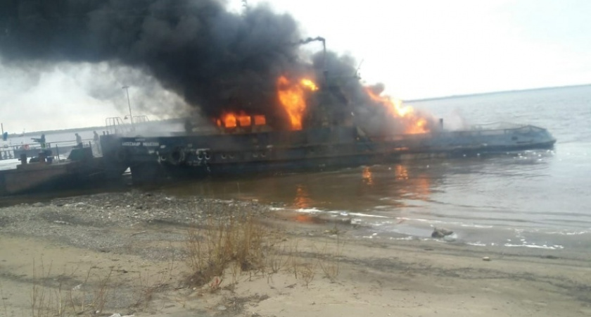 В Усинске горит буксирно-моторный катер на причале реки Печора.