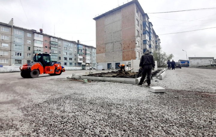 Отсыпкой и выравниванием территории, установкой бордюрного камня и укладкой асфальта работники МБУ «Специализированное дорожное управление» занимались в границах многоквартирных домов по адресам: ул. Гоголя,6; 7; 9 и 9А, Ломоносова,16.