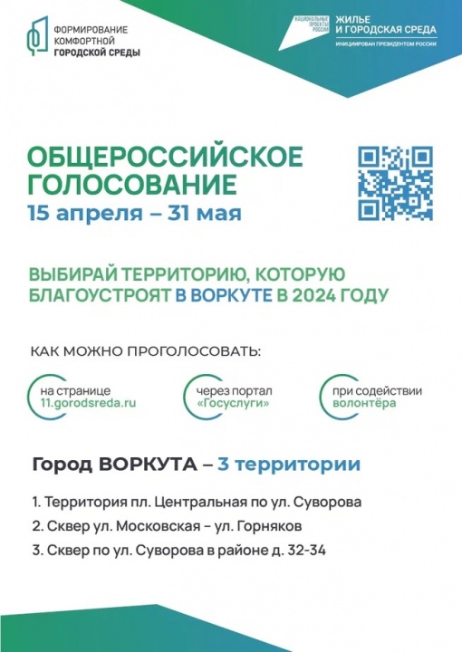 В рамках Всероссийского онлайн-голосования воркутинцы продолжают выбирать общественную территорию для благоустройства в 2024 году.