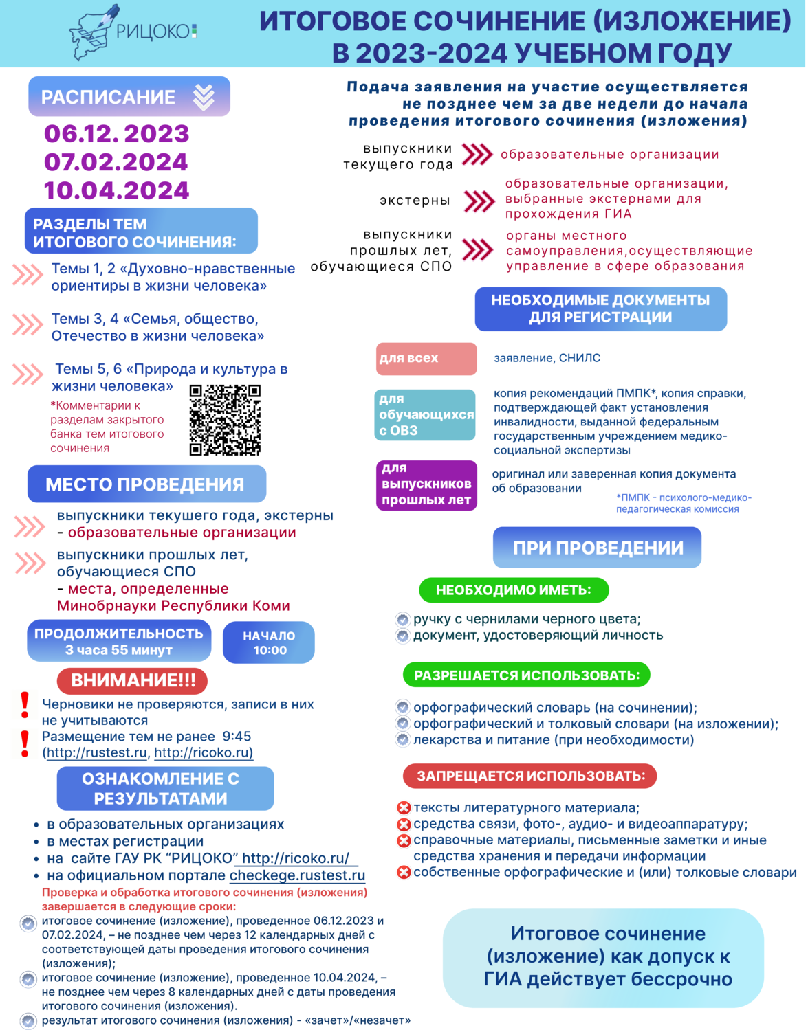 Информационный плакат «Итоговое сочинение (изложение) в 2023-2024 учебном году»