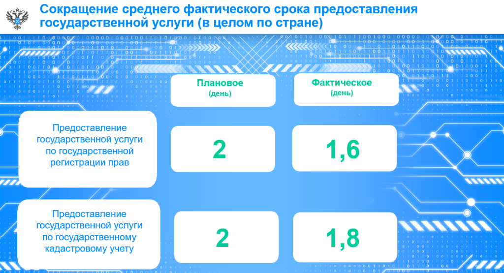Сегодня благодаря программе обеспечивается достижение ключевых показателей эффективности деятельности Росреестра, в том числе, сокращаются сроки государственного кадастрового учета и государственной регистрации прав на недвижимое имущество, а также количество приостановлений этих процедур.