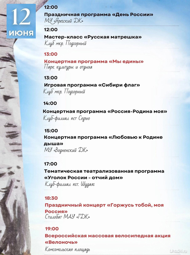 Уважаемы ухтинцы и гoсти города, приглашаем вас на праздничные мероприятия, посвященные Дню России.