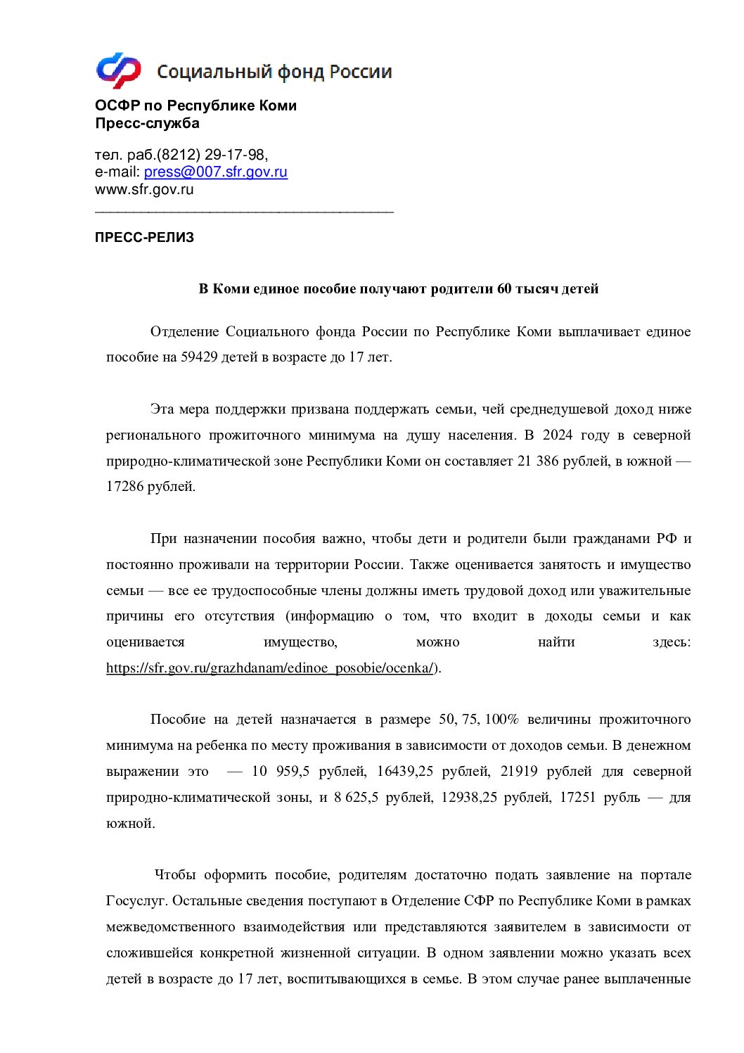 Отделение Социального фонда России по Республике Коми объявило о начале выплаты единого пособия для граждан, которые нуждаются в финансовой поддержке. Эти выплаты направлены на помощь тем, кто оказался в трудной жизненной ситуации и нуждается в дополнительной поддержке.