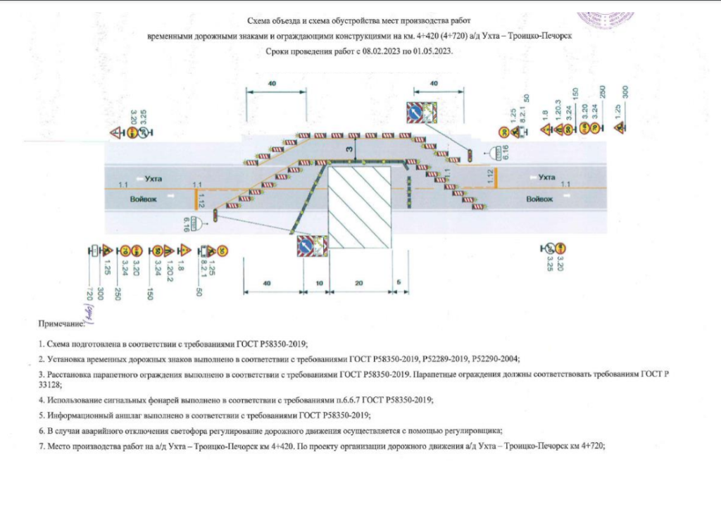 Как сообщили в транспортном отделе УЖКХ, с 8 февраля по 1 мая 2023 года будет частично ограничено движение транспорта на участке автомобильной дороги Ухта – Троицко-Печорск км. 4+420 по фактическому километражу (км. 4+720 по проектному).
