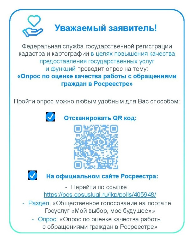 Друзья, просим вас пройти тематический опрос по оценке качества работы с обращениями граждан в Росреестре.