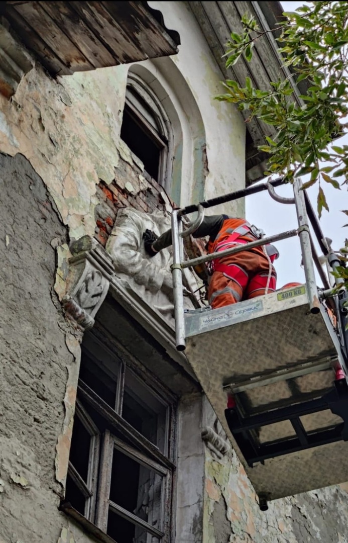 При подготовке к сносу расселенного дома № 26 по Суворова сотрудники компании демонтировали с главного фасада здания барельеф, изображающий горняка с отбойным молотком.