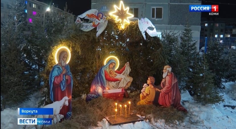 В Воркуте готовятся к Рождеству: на территории храма святой великомученицы Варвары оформили вертеп, сообщает телеканал "Коми гор".