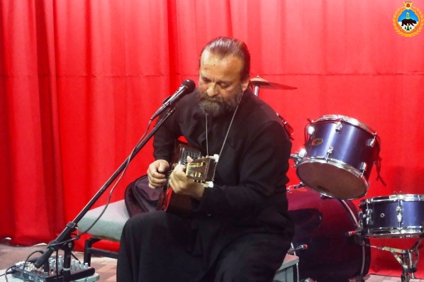 Священнослужитель выступил под гитару с широким репертуаром духовно-нравственных и патриотических песен. Гостем учреждения превосходно исполнены такие произведения как «Близнецы», «Золотые маковки Церквей», «Город золотой», «Это родина моя», «Гулять по воде», «Мой друг – художник и поэт».