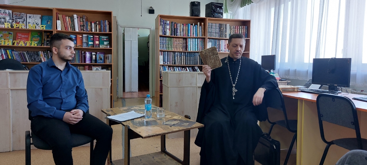 Сегодня в России празднуется День славянской письменности и культуры, приуроченный ко дню памяти святых равноапостольных братьев Мефодия и Кирилла. В преддверии этого праздника в Центральной библиотеке прошла встреча студентов Усинского филиала УГТУ с настоятелем храма Иконы Божьей Матери "Умягчения злых сердец", игуменом Гермогеном.
