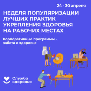 24-30 апреля — Неделя популяризации лучших практик укрепления здоровья на рабочих местах (в честь Всемирного дня охраны труда 28 апреля)