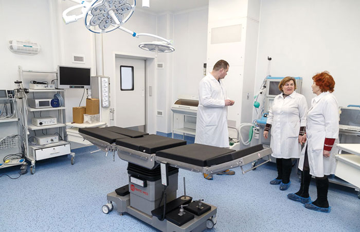 В корпусе оснащены – в том числе высокотехнологичным оборудованием – хирургическое и терапевтическое отделения, палаты реанимации и интенсивной терапии, отделение скорой медицинской помощи, клиническая лаборатория, физиотерапевтический и процедурный кабинеты.