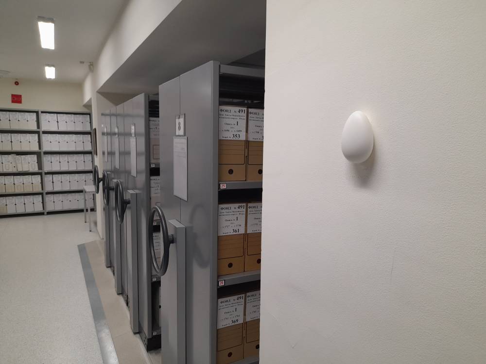 Раньше, чтобы отслеживать климатические параметры в архивных помещениях, работникам архива приходилось дважды в день заходить в хранилище, что негативно сказывалось на ценных бумажных носителях, которые не любят тёплых потоков воздуха, проникающих в помещение из вне при открытии двери. Теперь у сотрудников появилась возможность удаленно вести круглосуточный мониторинг микроклимата. Устройство передаёт данные прямо на компьютер или телефон абонента, при необходимости сигнализируя обо всех отклонениях температур, сохраняя показатели за несколько месяцев в облаке. В случае отклонения показателей от заданных параметров система оповещает специалистов через SMS-сообщение.