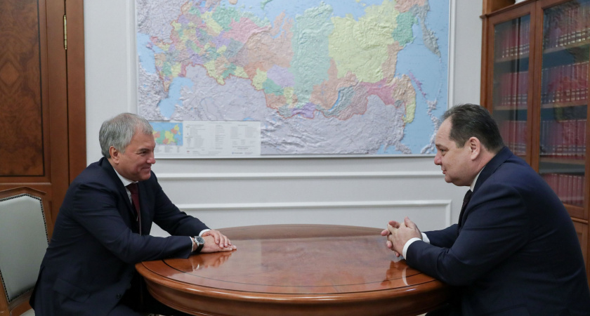 Спикер Государственной думы Вячеслав Володин провел беседу с временно исполняющим обязанности главы Республики Коми Ростиславом Гольдштейном. В ходе встречи речь шла о региональных инициативах, касающихся продвижения Арктики и северных областей.