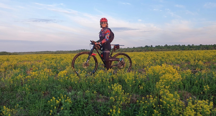 “Для меня не является целью преодолеть большое расстояние, самое большое за день было до 120 километров. Вот недавно, 9 мая я решила проехать 78 километров, но так увлеклась, что доехала до Корткероса, а вернувшись в город, поехала еще с велодрузьями прокатиться и получилось 113 километров. Мне интереснее всего открывать новые маршруты: люблю природные грунтовые дороги в полях, тропинки в лесу, вдоль наших рек и озер, и даже бездорожье. Первые весенние велопрогулки у меня были вообще по снежному насту”.
