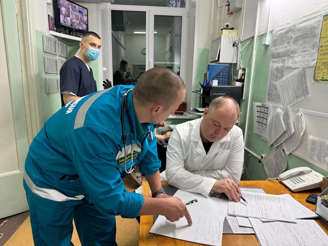 На фото врачи из городов Коми, прибывшие для поддержки интинских коллег Врачебные бригады Интинской больницы осмотрели на месте происшествия всех пострадавших.