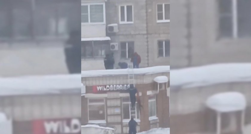 Очевидец снял на видео, как сотрудники "скорой" поднимались на крышу крыльца одного из магазинов, чтобы достать пострадавшего. Также медики через окно второго этажа протащили мужчину в квартиру, чтобы вытащить его на улицу.