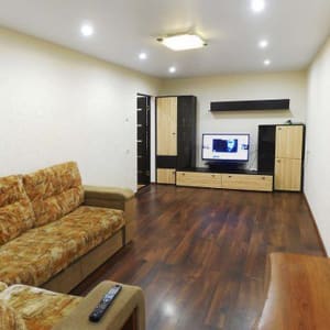 2 дивана, ж/к телевизор d"108 см, очень удобная кухонная плита с пьезорозжигом и остальная бытовая техника.