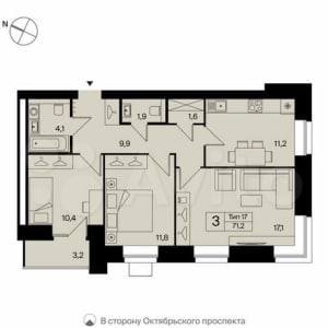 Классическая «трёшка» №168 свободной планировки с мастер-спальней. Есть лоджия с французским остеклением выхода, два раздельных с/у, места для систем хранения. Квартира светлая, окна с низкими подоконниками (60 см от пола). В одной из комнат — эффектное большое угловое окно. Вид в сторону Октябрьского пр-та. Энергоэффективное остекление Energy Light, профиль Deceuninck 71 мм. Высота потолков — 3,1 м.